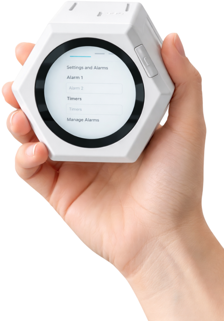 Descubre una nueva forma de medir el tiempo de manera consciente. Un dispositivo físico que transforma gestos simples en información útil, sin apps intrusivas ni distracciones digitales.