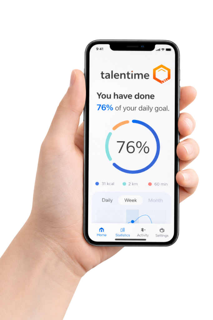 Talentime reúne en un único dispositivo y plataforma las herramientas necesarias para registrar, analizar y comprender cómo distribuyes tu tiempo, de forma natural, sin apps intrusivas ni distracciones digitales.